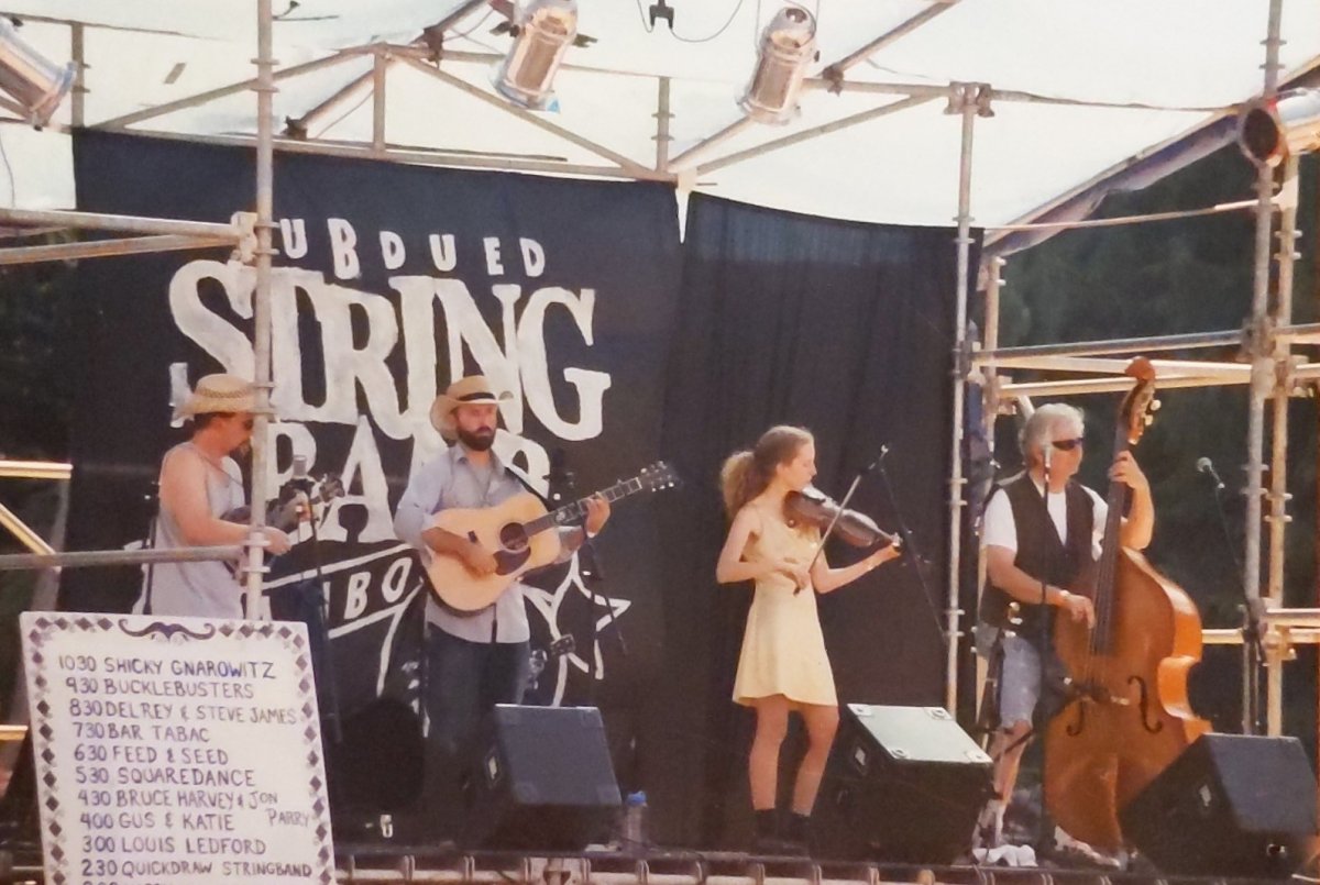 Emerging from the American string band tradition, Quickdraw String Band plays a repertoire of old-time, early bluegrass, fiddle blues, and rags, including some of their own originals. Experienced and hard-working, they have been performing around the Pacific Northwest off and on for the past twenty-two years. Unique in their sound, Quickdraw String Band is not completely old timey or bluegrass, but is both, and sometimes ragtime, old country, fiddle blues, or folk and originals. Their style may defy simple categorization but is solidly grounded in acoustic tradition. Their sound consists of various configurations of mandolin, fiddle, guitar, bass, banjo, and vocals. Their old bassist Goldtooth would often state that nobody else is doing what Quickdraw is doing musically in Whatcom County, and if they are, "they ain't doing it quite like us." Quickdraw has fun playing their music and has played the full range of venues including festivals, weddings, bars and nightclubs, cafes, brewpubs, wine bars, farmer's markets, and house concerts.
